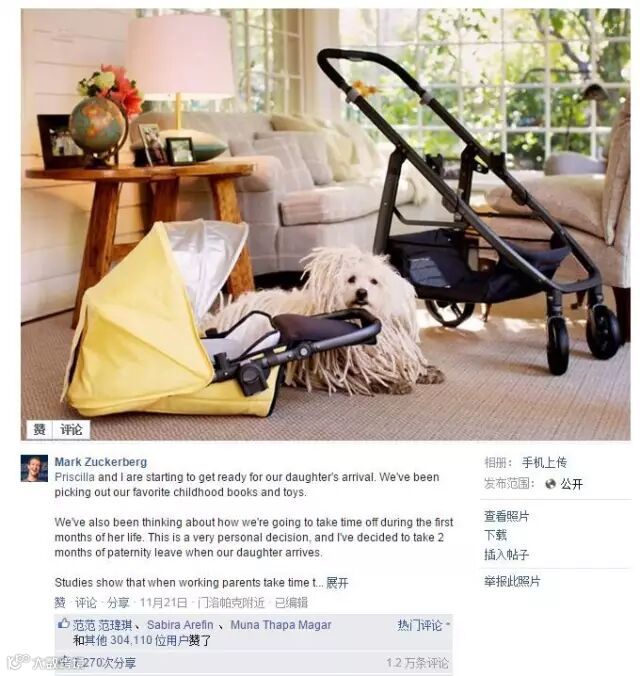 还有这一位,享誉全球的天才少年刚刚晋升为老爸行列——马克·扎克伯格