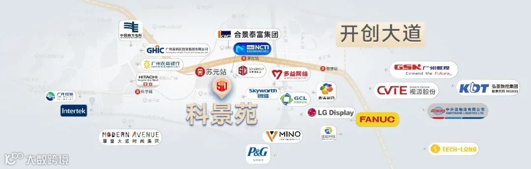 项目毗邻开创大道,总部企业数量高达上百家,位列广州市第二,如宝洁中国、日立IT中国总部、多益网络、LG、创维集团、香雪制药、摩登大道时尚中心、合景泰富华南总部、协鑫新能源南方总部、盛世长运集团总部、南方电网、广州农商行、科学城投资集团、广州开发区控股集团、广州开发区投资集团、广州高新区集团、中外运物流有限公司、广州印钞厂数字中心等。