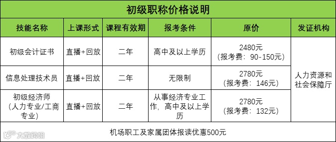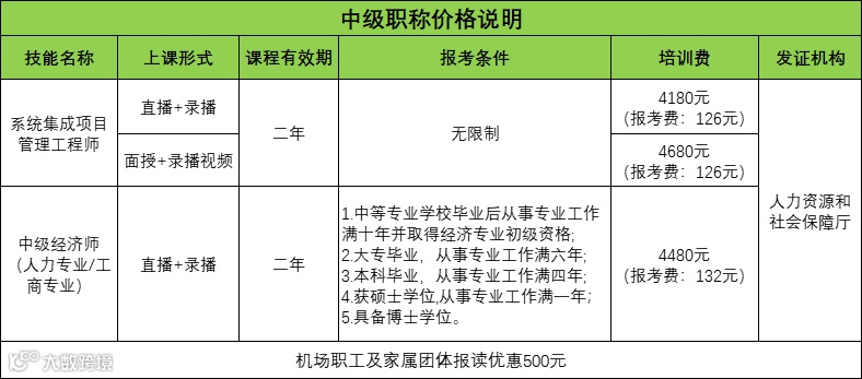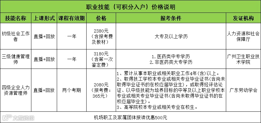 职称、职业技能补贴:机场职工及家属报名职称、职业技能可减免500元。