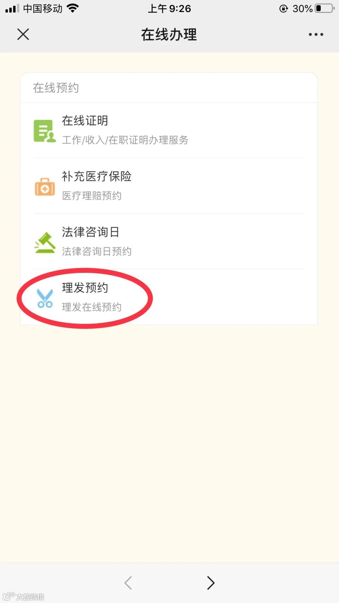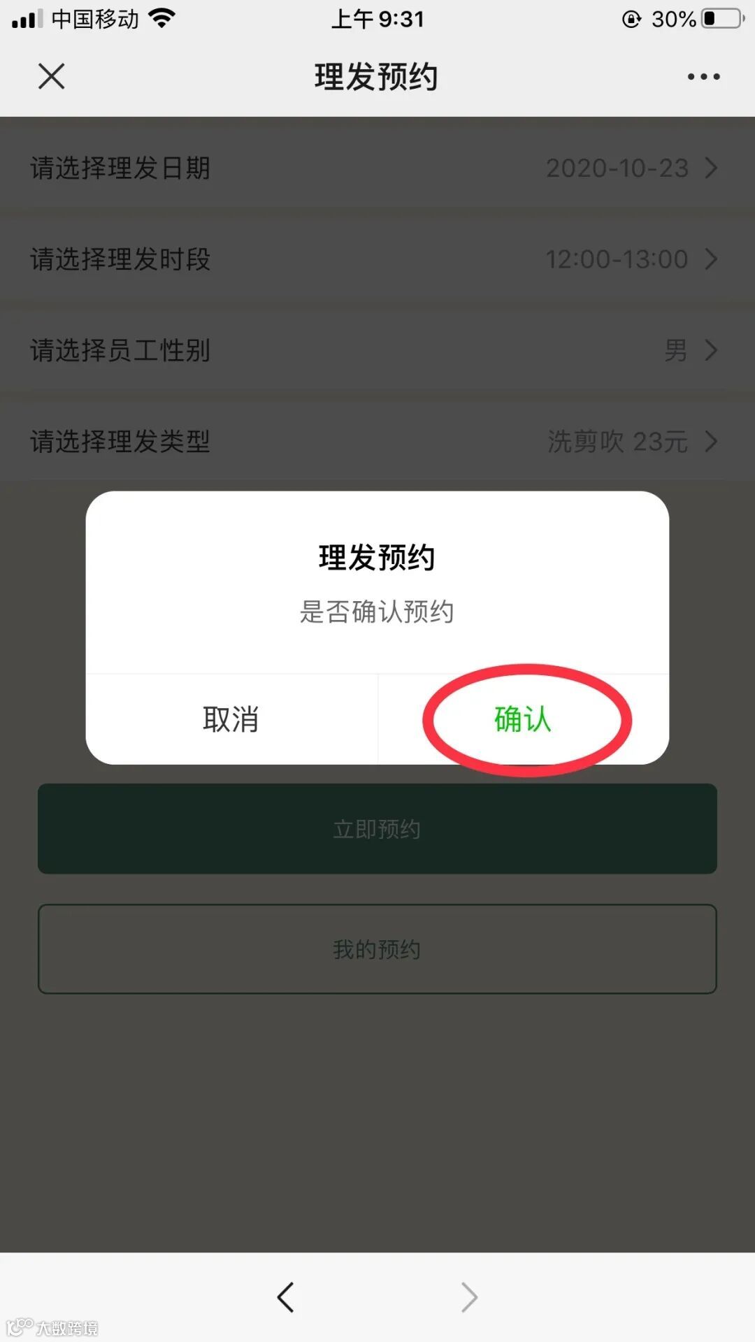 点击“理发预约”