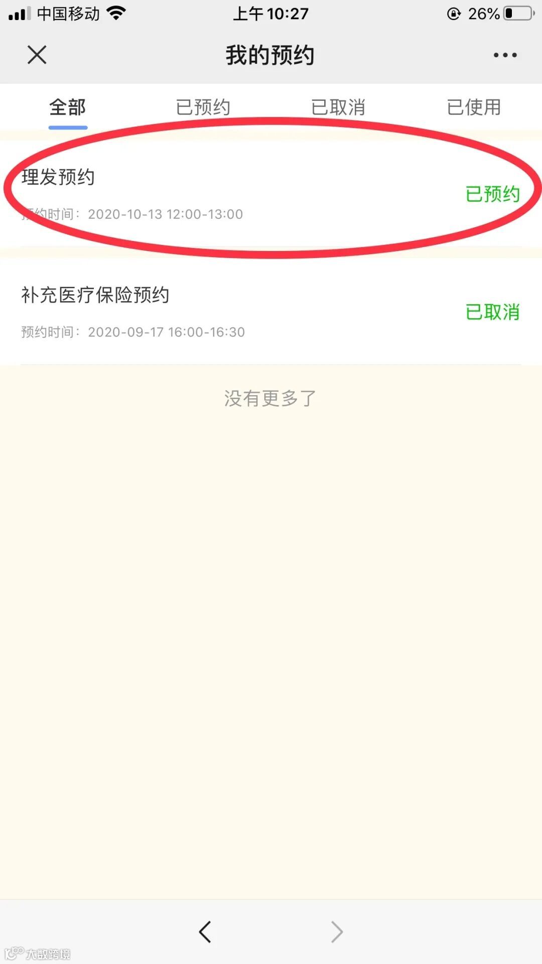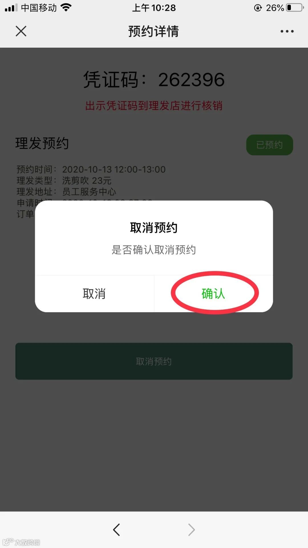 点击“取消预约”