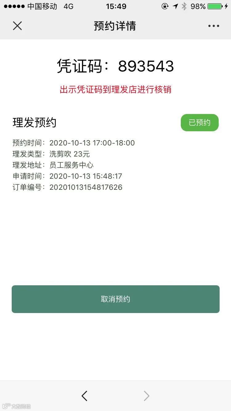 →“理发预约”→“我的预约”