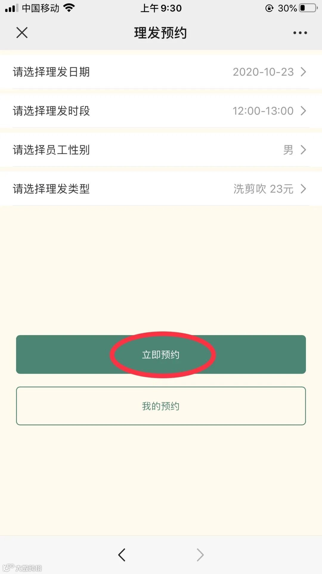 选择“理发日期”、“理发时段”、