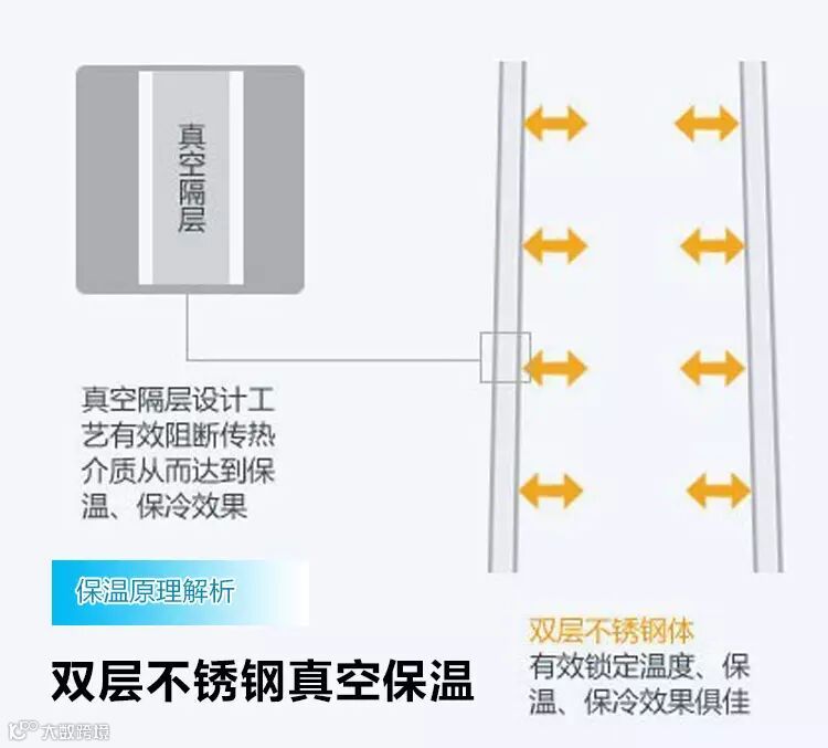 要实现奶瓶的保温或保冷,就是要尽量减少热量的损失。而要减少热量的损失,就要从三个方面减少热传递:对流、热传导和热辐射。太平洋宝贝保温奶瓶使用了内外双层壳并从中抽真空,这样就尽可能减小了对流与传导。此外,还在内部镀了金属反射层,这样就尽量减小了热辐射。