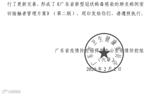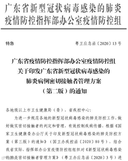 广东省新型冠状病毒感染的肺炎病例密切接触者管理方案(第二版)
