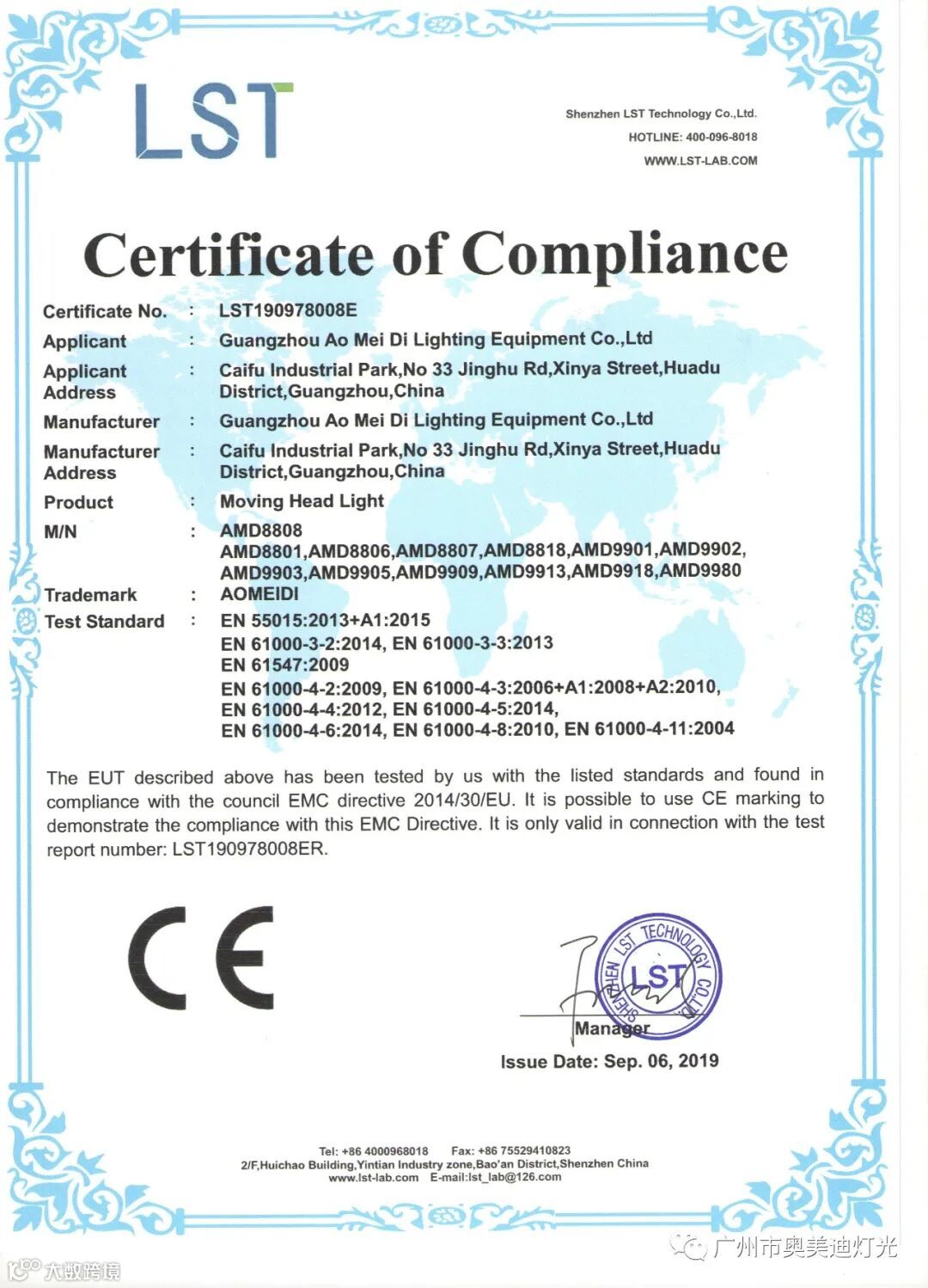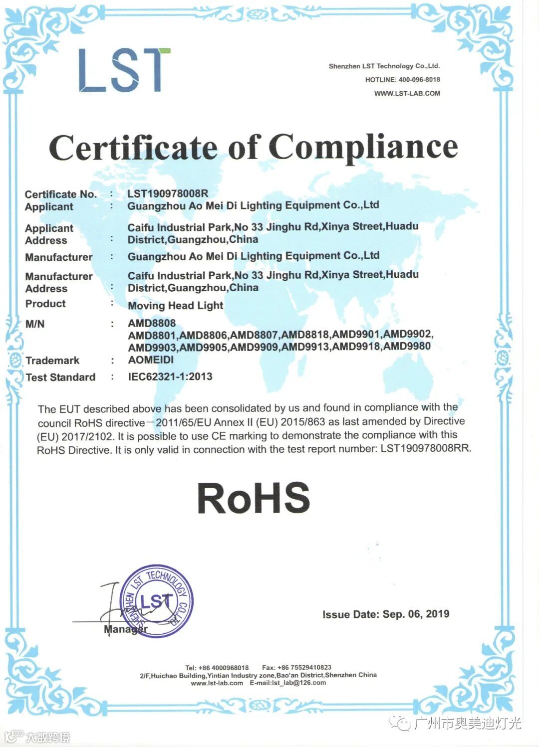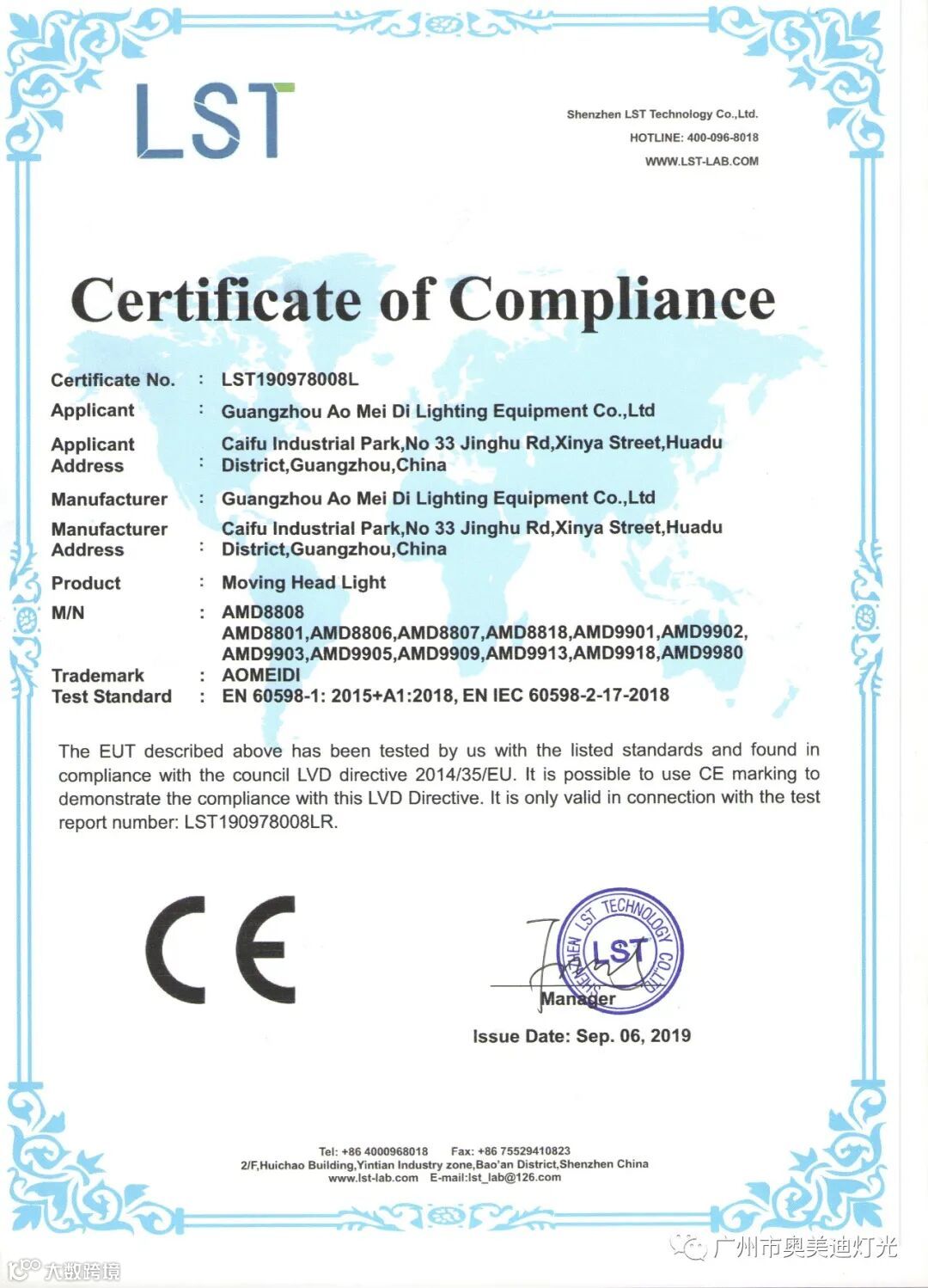 奥美迪灯光是国家高新技术企业,广东省湖南商会演艺设备专委会常务副会长单位,通过了ISO9001:2015质量管理体系认证,知识产权管理体系认证,产品通过了欧盟CE认证和ROHS环保认证,获得十佳竞争力品牌、全国专利技术先进企业、质量.服务.诚信AAA企业、绿色环保推广产品、质量检测.国家标准合格放心产品等证书。
