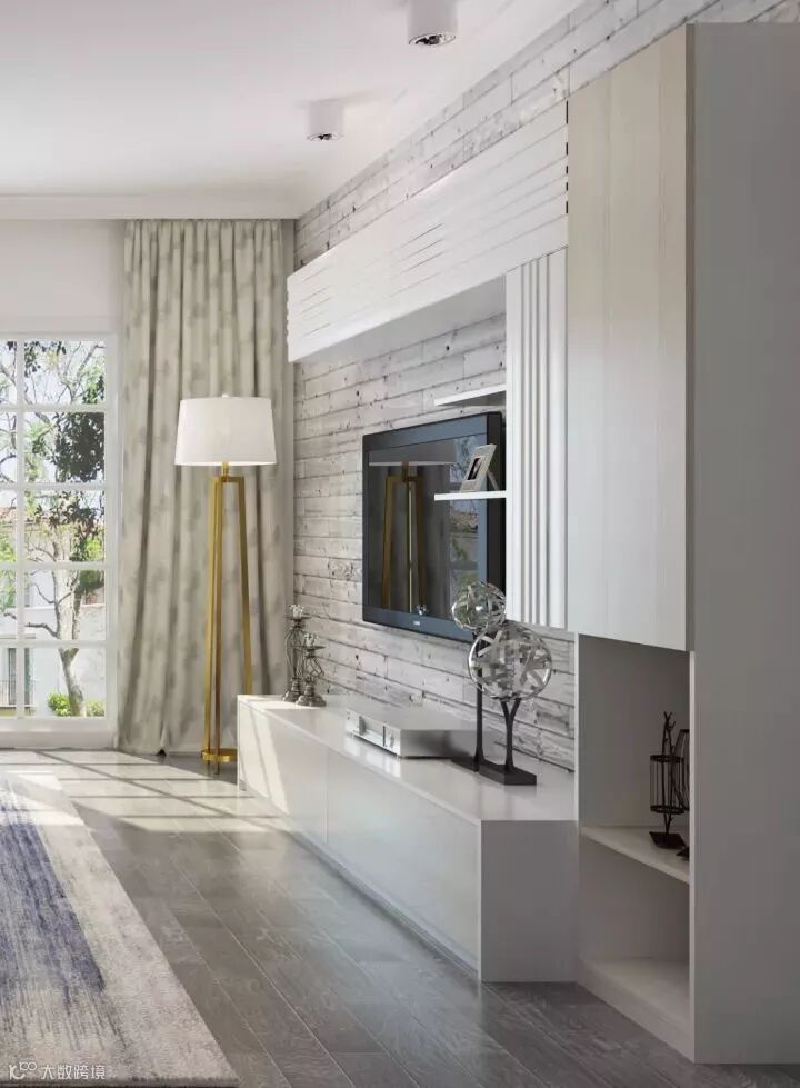 暖白栓木系列电视柜,忘我地演绎着几何的极致美学,造型虽简单,但设计师的心思在柜的质地和触感上得到体现,纹理斑驳却细腻柔和,与极简美学完全相融。而极典落地灯的金属感打破了单色的沉闷,极简中透着些许小温暖。