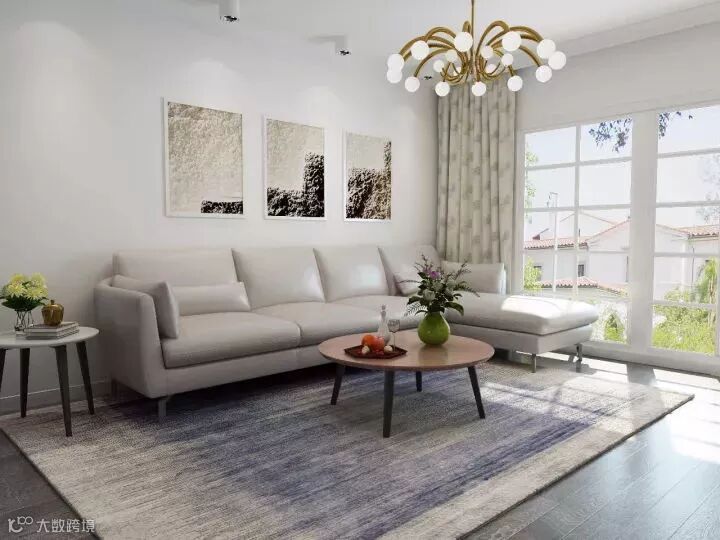 灵动轻巧的小配角摩卡圆几,让客厅看起来不止大了几个平方米,而且金属脚与沙发处做了很好的呼应,让空间显得更加灵动大气。