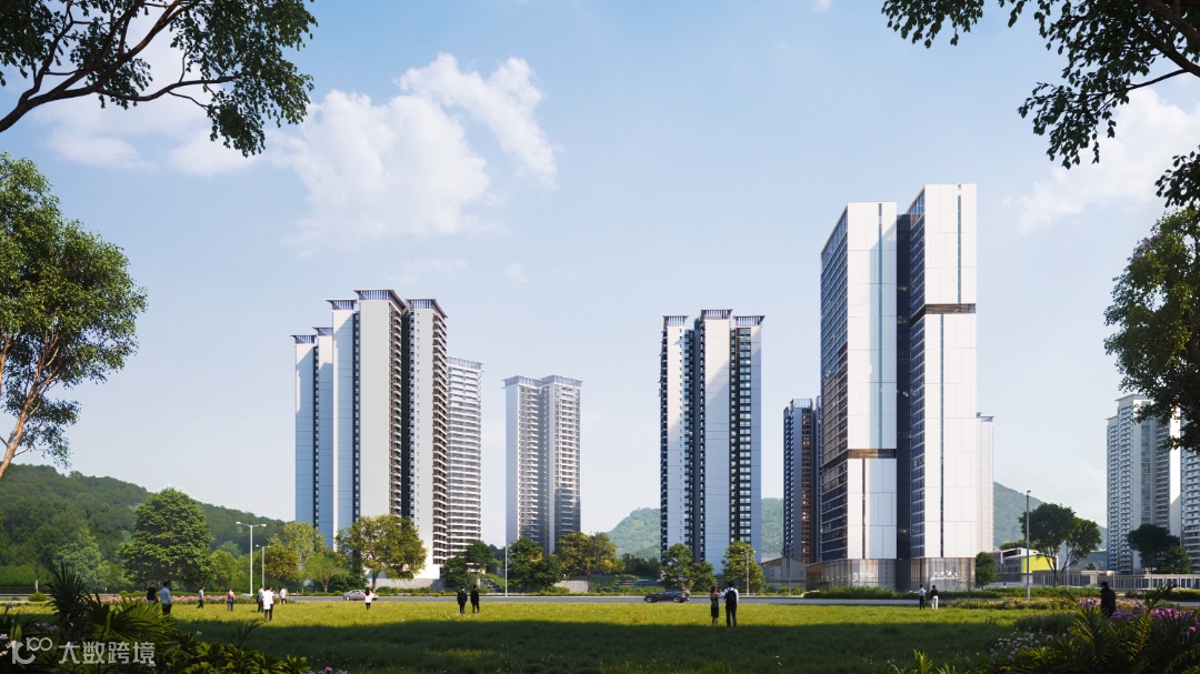 建筑设计彰显岭南风韵:塔楼顶部以塔冠巧妙遮蔽设备,梯屋造型巧妙融入岭南传统元素;立面采用简约流畅的线条,营造出高低错落的建筑轮廓,使岭南建筑特有的节奏与韵律与现代居住功能浑然一体。市井烟火与岭南风雅相得益彰,社区商业与舒适雅居有机分离,塑造当代品质新岭南生活社区。