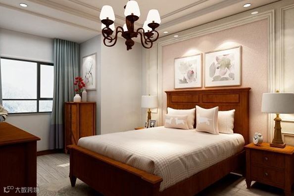 主卧的设计真的是最喜欢的,因为户型稍微有点畸形,斗柜放在那里,完美化解尴尬,方便用又好看。床头背景墙用壁纸加石膏线包边,看上去很温馨。床是实木的,睡起来会很舒服。