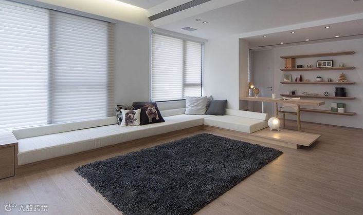 这种没有靠背的沙发,可以使房间面积感增大,而且也有多种不同的用途,是个不错的创意。