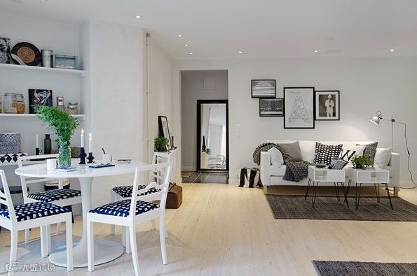 如果你的居室面积小,一个较简单的装修方法就是可以大量使用白色:墙面、房顶、地面、家具、装饰品,这些都是白色的好载体。