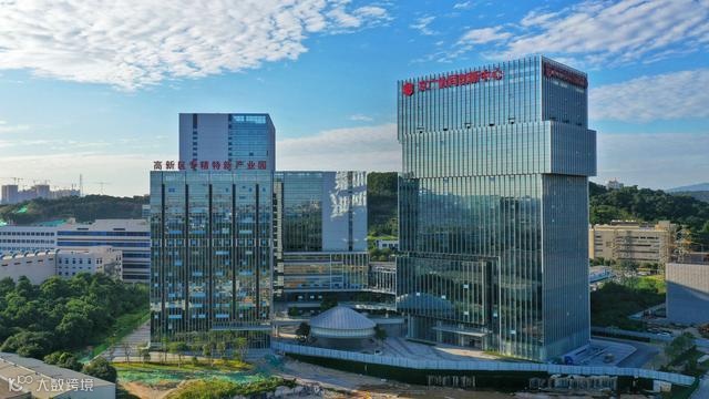 项目占地面积约3.2万㎡,建筑面积约18.3 万㎡,涵盖工业生产、创新办公、住宿展览等功能。园区定位引进新一代信息技术、人工智能、医疗器械等高端产业,打造集研发、办公、生产于一体的摩天工坊,目前已聚集了艾佛光通、合芯科技、信维电子、华南理工大学研究院等企业和机构。现园区新一代信息技术及生物医疗器械两大支柱产业已形成,逐步构建产业集群效应。