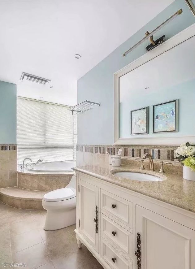 卫生间临窗设计了美美的浴缸,忙碌了一天回到家后舒服的泡个澡,可以迅速提升幸福感。