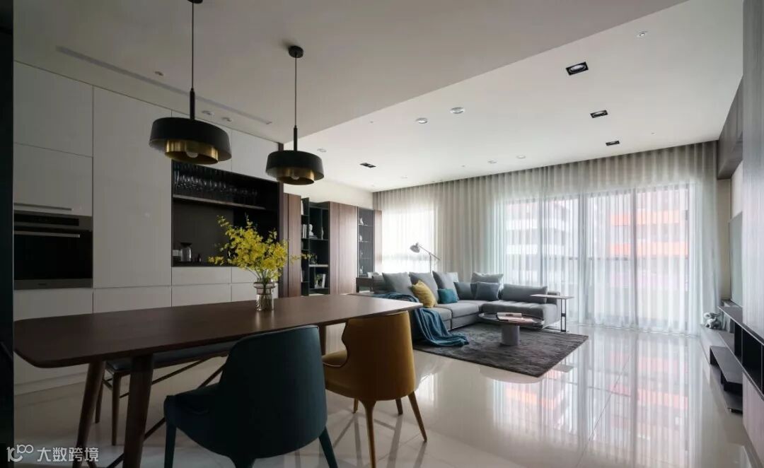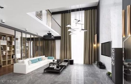冷色调空间讲究色彩搭配统一协调,这个别墅空间将黑白灰的冷发挥到极致,而再与抹茶绿抱枕和白色的沙发相呼应,瞬间整个空间都活了!满眼都是高贵和舒适感,这样的空间,怎么能不让你着魔?