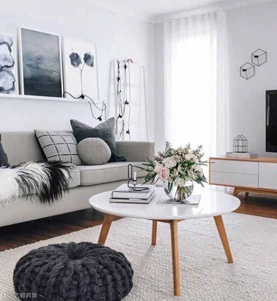 除了床品,在客厅我们可以放置一些抱枕毛毯,也同样给我们冬日里的温柔感。