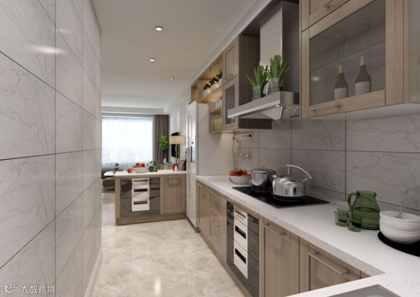 一方面利用黑、白、棕、灰等冷色系打造空间主调;一方面利用烟熏橡木实木皮的木质建材注入温润元素,与仿石纹磁砖的雾面立体纹路,柔化过硬及过冷的氛围,却仍然保有符合业主的独特个性。