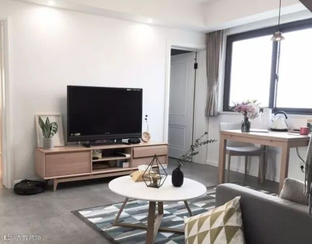简单的木质沙发,通过增加吊顶和踢脚线,增加了空间的层次感,也显得更精致。客厅用高级灰的家具配白墙,点缀一些马卡龙色,北欧系的颜值瞬间爆表。