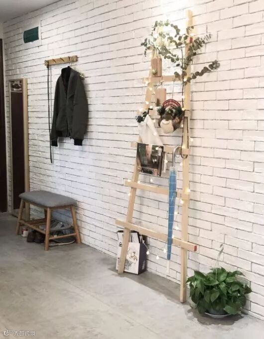 简单的装饰,梯子作为储物架别有创意