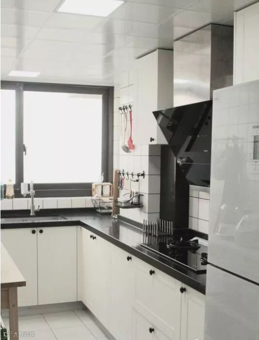 L型厨房的设计,保证活动空间充足的情况下最大化提升储物容量。