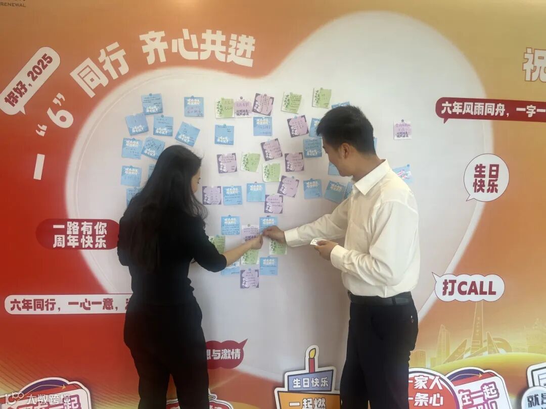 3月20日起,“爱心祝福上墙”活动吸引全员参与,“爱心剪影”被城更人的走心金句填满,100余张彩色便签拼成巨型爱心。员工写下“愿未来6年,我们仍是彼此的战友”“一路繁花,未来可期”等真挚寄语,更有手绘漫画、藏头诗等创意表达。笔尖轻触的每一笔都是城更人“一条心”的见证,滚烫的心意凝聚出奋进前行的力量,汇聚成照亮前路的星河。