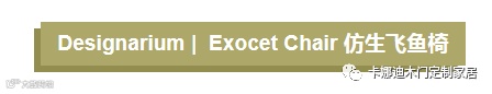 Exocet在法语中有“飞鱼”的意思,顾名思义Exocet Chair拥有着简洁精干的鱼形外表,将原木风格搭配哑光金属,流畅利落的线条设计,恰到好处的曲线衬托着鱼儿优美的身躯,仿生的设计也为生活空间带来一派生机。Stéphane Leathead将原本麻木僵硬的原木与金属,巧妙地加入仿生的设计,不仅给使用者带来方便的生活,也点亮了家居空间,为生活平添了几分生命的力量。