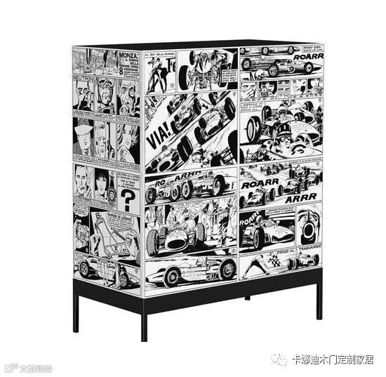 意大利著名制造商ennezero给我们带来一组震撼眼球的系列家具。以漫画为题材设计了一系列的柜子,并将那些漫画搬到家具上,让家具显现出独有的艺术特质,看起来就像一本漫书,虽简单,但是却充满了趣味和个性。