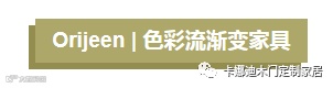 色彩的运用,使家具充满了情调,韩国设计所orijees设计了一组渐变家具,利用透镜技术实现变色家具,被称为“色彩流”。设计师的主要目的在于提醒用户与家居物体关系的视觉变化,从而注重家具的使用。可以作为书房的小书柜,或者是餐边柜,亦或是卧室里的床头柜。