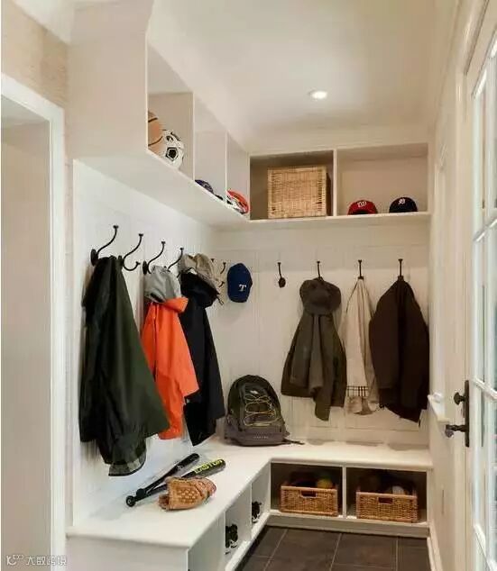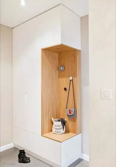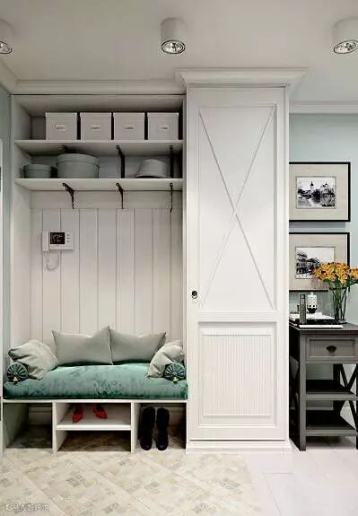 门厅衣柜的设计应根据空间大小、风格及个人喜好设计,结合自己户型空间,比如门厅空间比较狭小,设置矮柜觉得浪费了空间,那就可以沿墙设置几排到顶的层板或壁挂式的柜子,这样悬挂衣服、帽子或其他物品都可以。