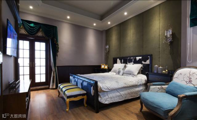 设计整体但又各具独立空间个性,二层的主卧采用白色这种低调大气的颜色为主色调,以橄榄绿色为点缀,提升整个空间的舒适氛围,少量有趣味而又充满力量的家具介入,提升整个空间的高贵氛围。