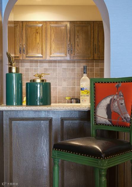 在细节方面,设计师也是别具匠心地利用了简练的线条和色彩的搭配来表现空间的韵味,复古的家具、大理石砖面等这些元素的不同组合瞬间营造出一番别致。