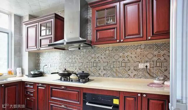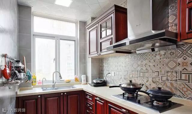 厨房的瓷砖特意挑的这种带花纹的用久了也不会显得