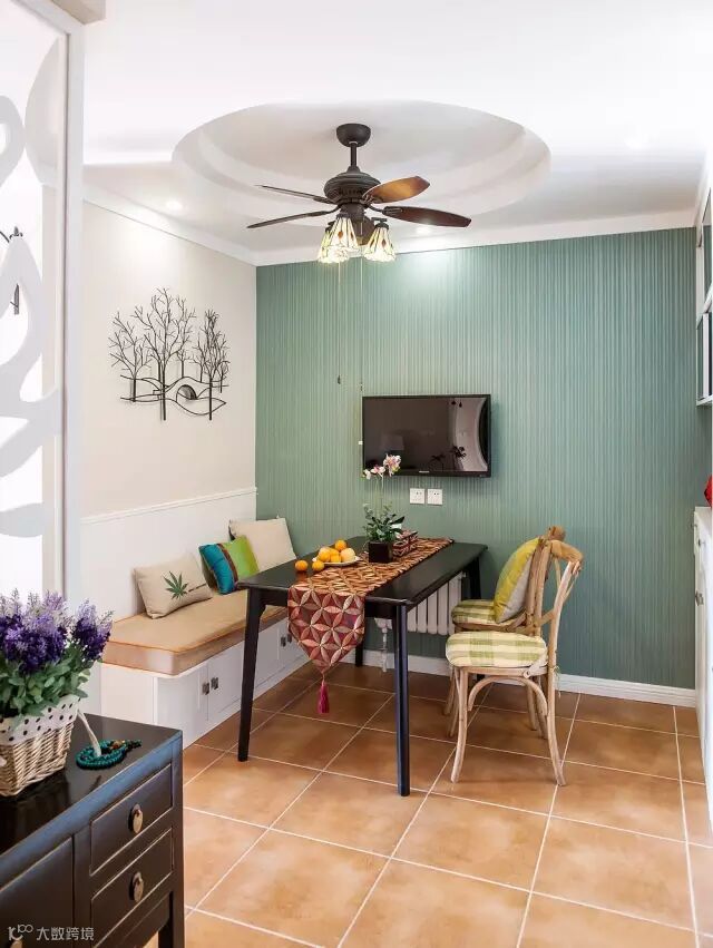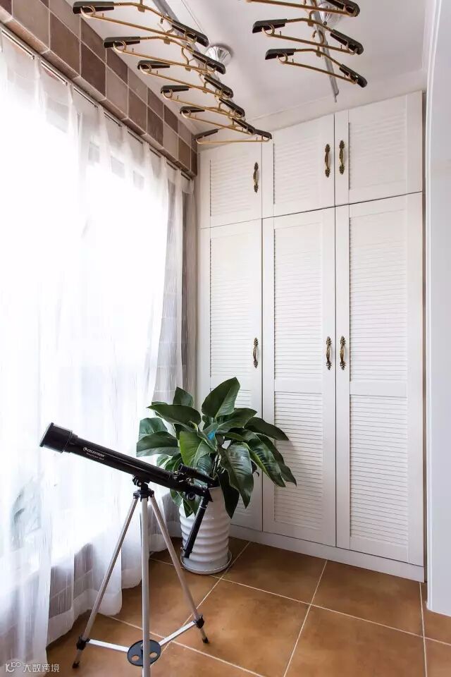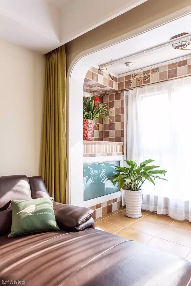 ▲阳台部分,铺设小尺寸的彩砖,马赛克状的组合图案配以绿植和具有朦胧感的窗帘,地中海的感觉扑面而来。