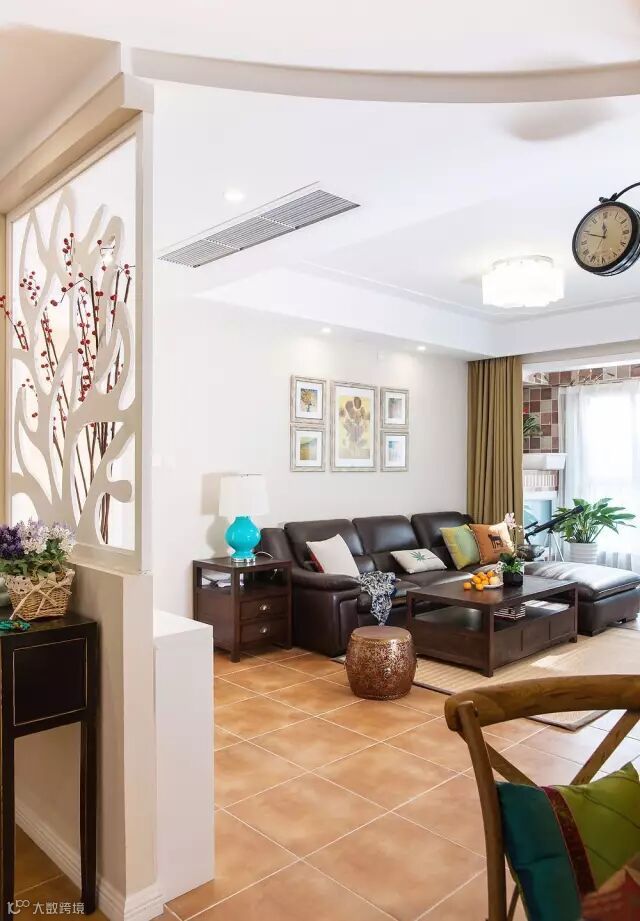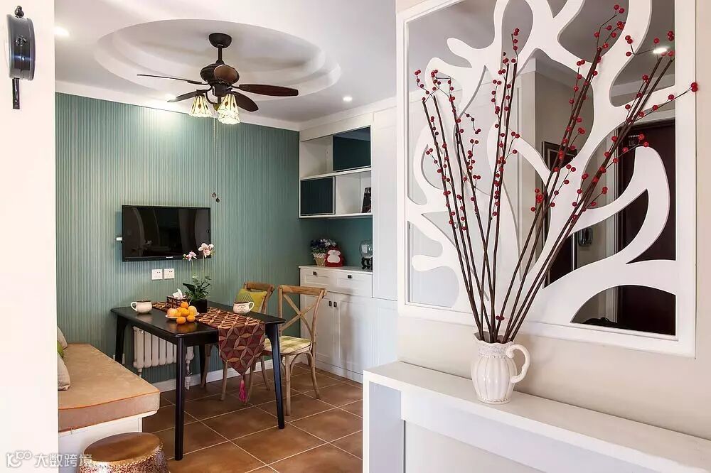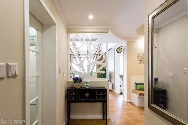 ▲玄关用造型优雅的镂空隔断隔开,不仅美观,也让阳光洒进了空间。