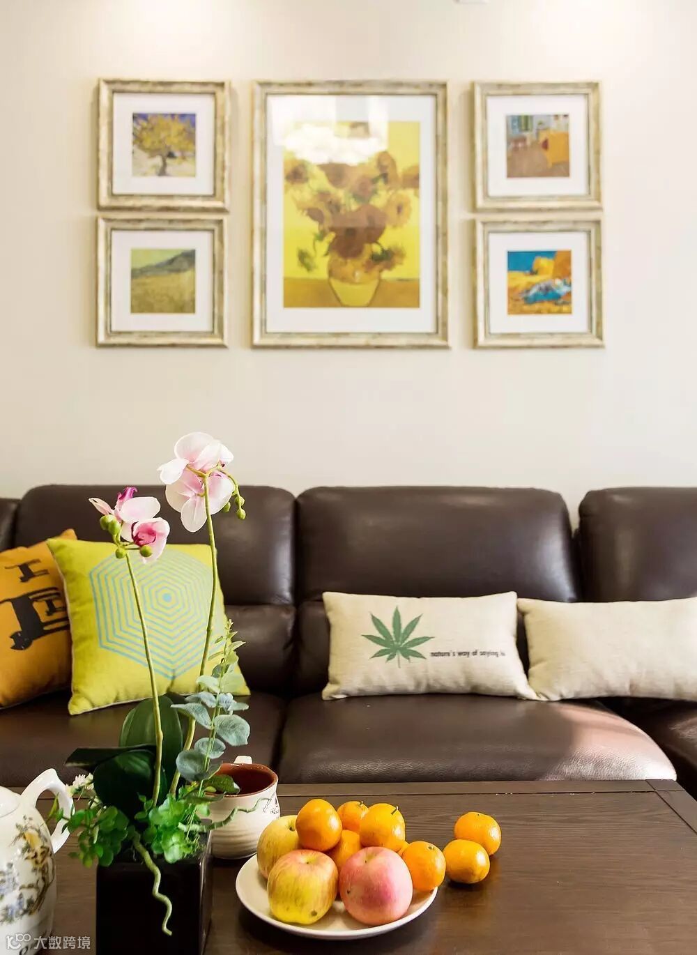 ▲沙发和茶几,则选取了深颜色系,深棕色的真皮沙发透着些许的厚重味道,能够给居室主人以安全感。