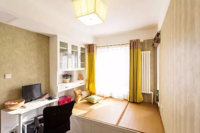▲巧妙利用书房兼次卧中的靠窗位置,设计了一处榻榻米,既能储物有能睡觉,简单的空间中也显现出了不简单的元素。