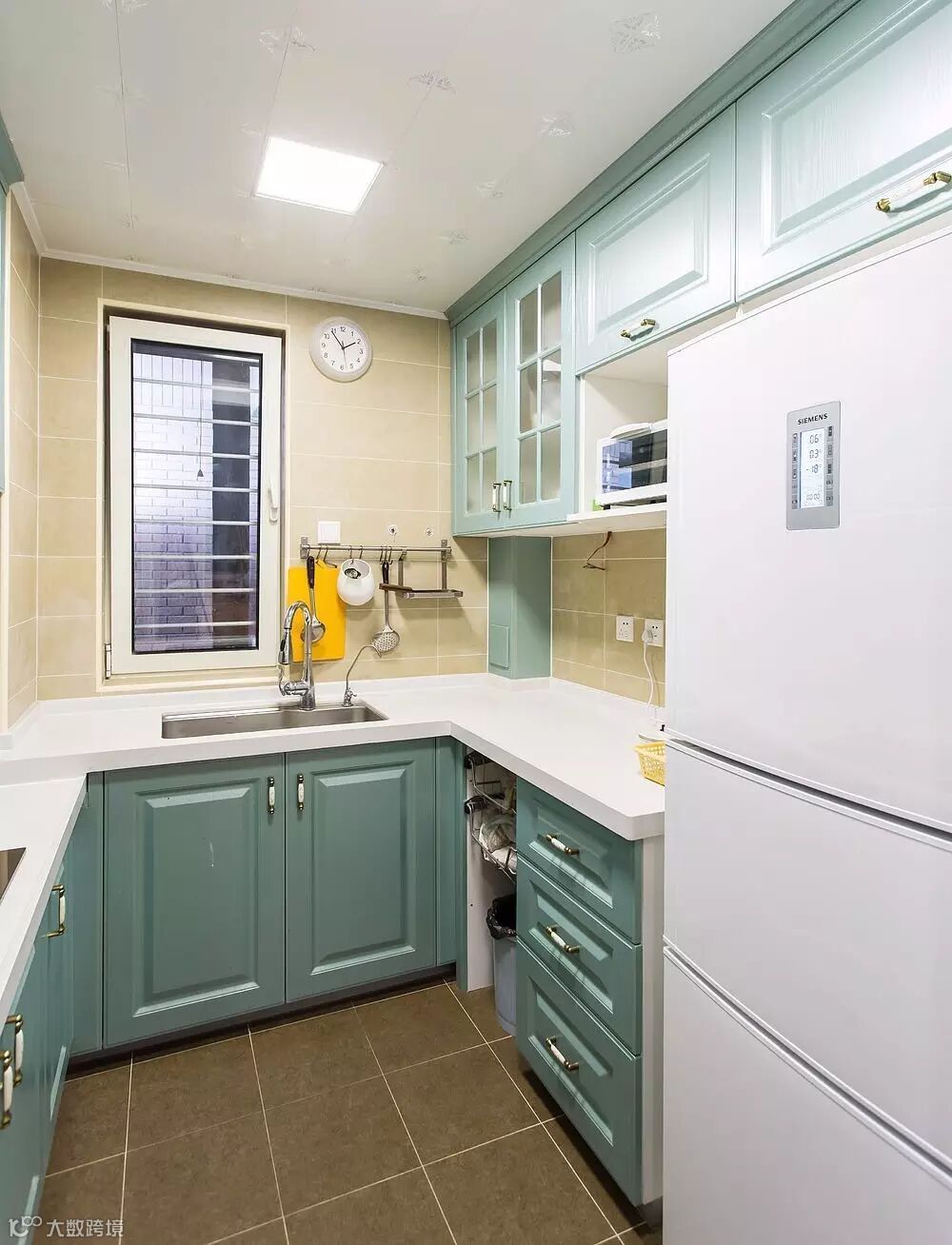 ▲厨房的空间不算大,最大程度的利用空间,整个厨房看上去井然有序,淡蓝色的整体色系,让烹饪者的心情也豁然开朗。