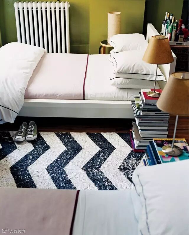 摞成堆的书籍也能充当床头柜