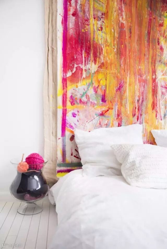 床头的背景墙再增加一面挂帘