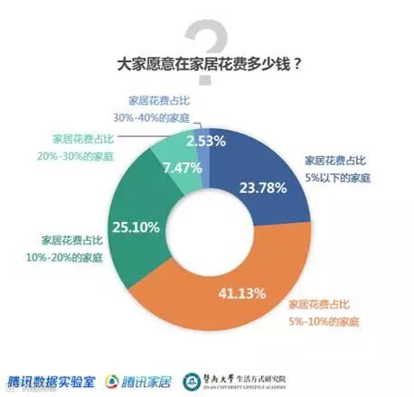 在家庭消费中,超过四成受访者的家居花费占家庭总收入的5%-10%。而改善型家庭的消费占比则达到10%-20%,高于高净值人群。