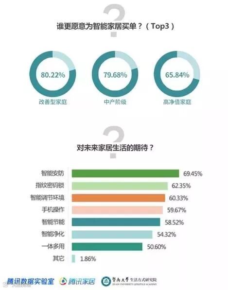 12月1日2017家居产业品牌创新峰会上,腾讯数据实验室、腾讯家居及暨南大学生活方式研究院联合发布了《2017影响中国家居生活方式趋势报告》。内容针对“设计、品质、功能及体验”四大维度综合评估家居生活方式,并围绕90后、女性、改善型家庭、中产家庭及高净值五大典型人群进行研究。