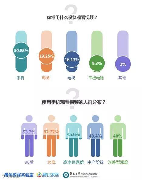 大屏到小屏的转换是飞速的,手机视频已经改变了人们的生活与社交习惯,其中90后、以及女性和高净值人群更热衷于将大量时间来观看手机视频。