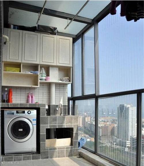 生活阳台——放置洗衣机,晾晒衣服,满足基本需求。