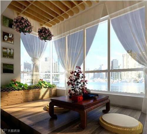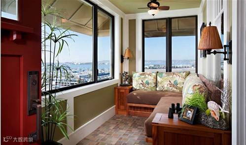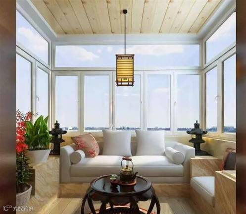 休闲密闭式的阳台可以不受天气的影响,摆上沙发靠着窗,窗外是天边远方,心中仿佛充满了古人的诗情。