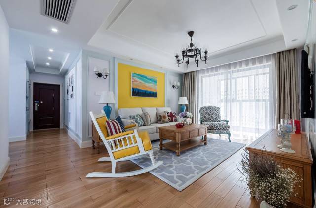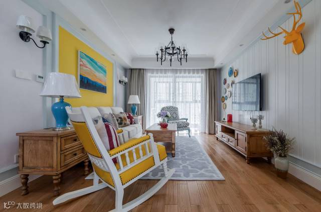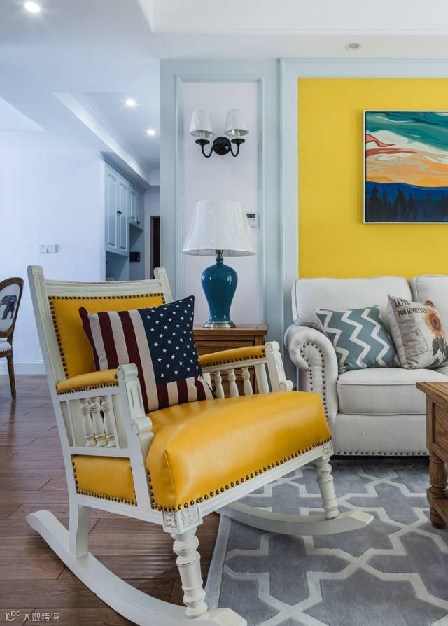 ▲ 明黄色的复古摇椅和沙发背景形成呼应
