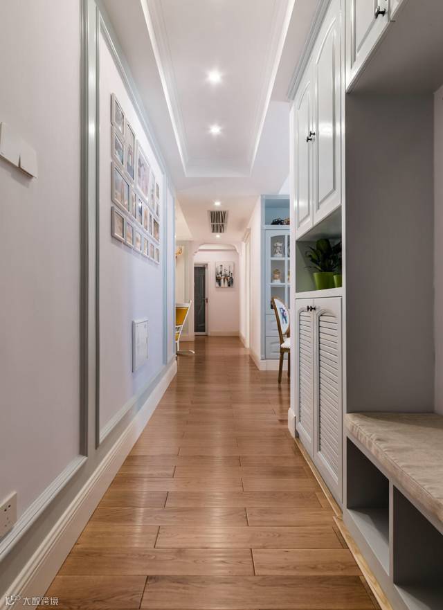 ▲ 建筑面积106平,进门玄关走廊侧面是一个综合鞋柜,除了存放鞋子之外,换鞋凳等功能同时兼具