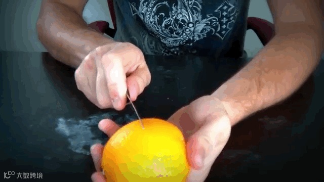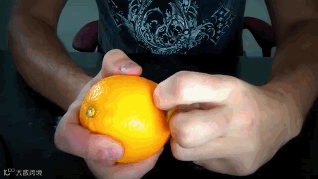 你可以拿刀子延着橙子的表面划一圈,接下来用大拇指扒开果皮!