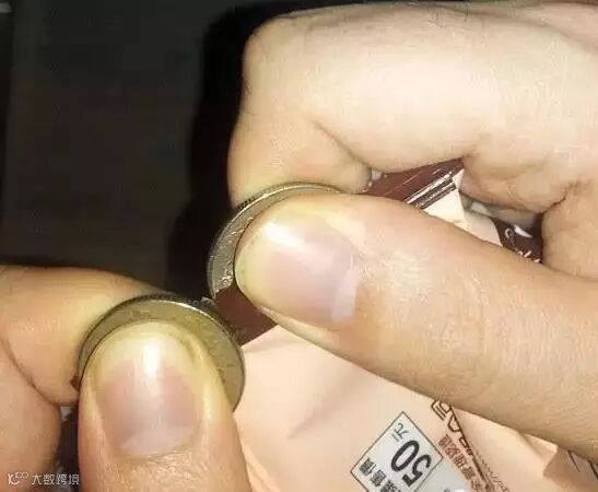 有时候想要吃洋芋片又打不开,真的很恼怒呢!你可以在包装两侧放硬币(很靠近),然后用大拇指挤压。
