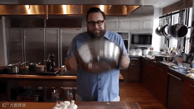 先把一整颗蒜头打散,然后放进盆子里、盖上另一个盆子。然后剧烈摇晃,蒜头马上就去皮了。