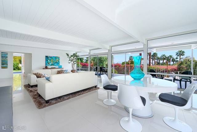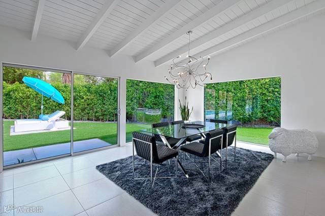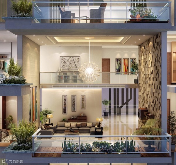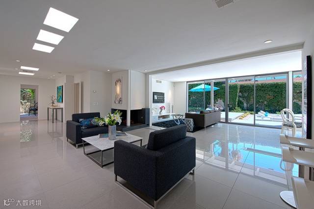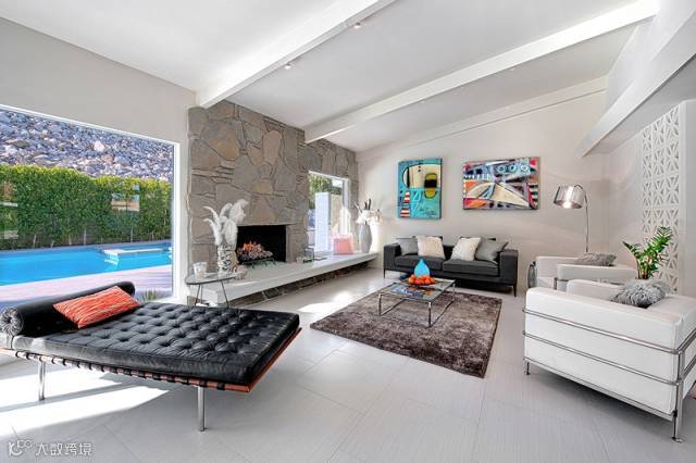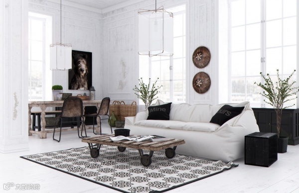 绿色植物给黑白的客厅带来清新的气息。